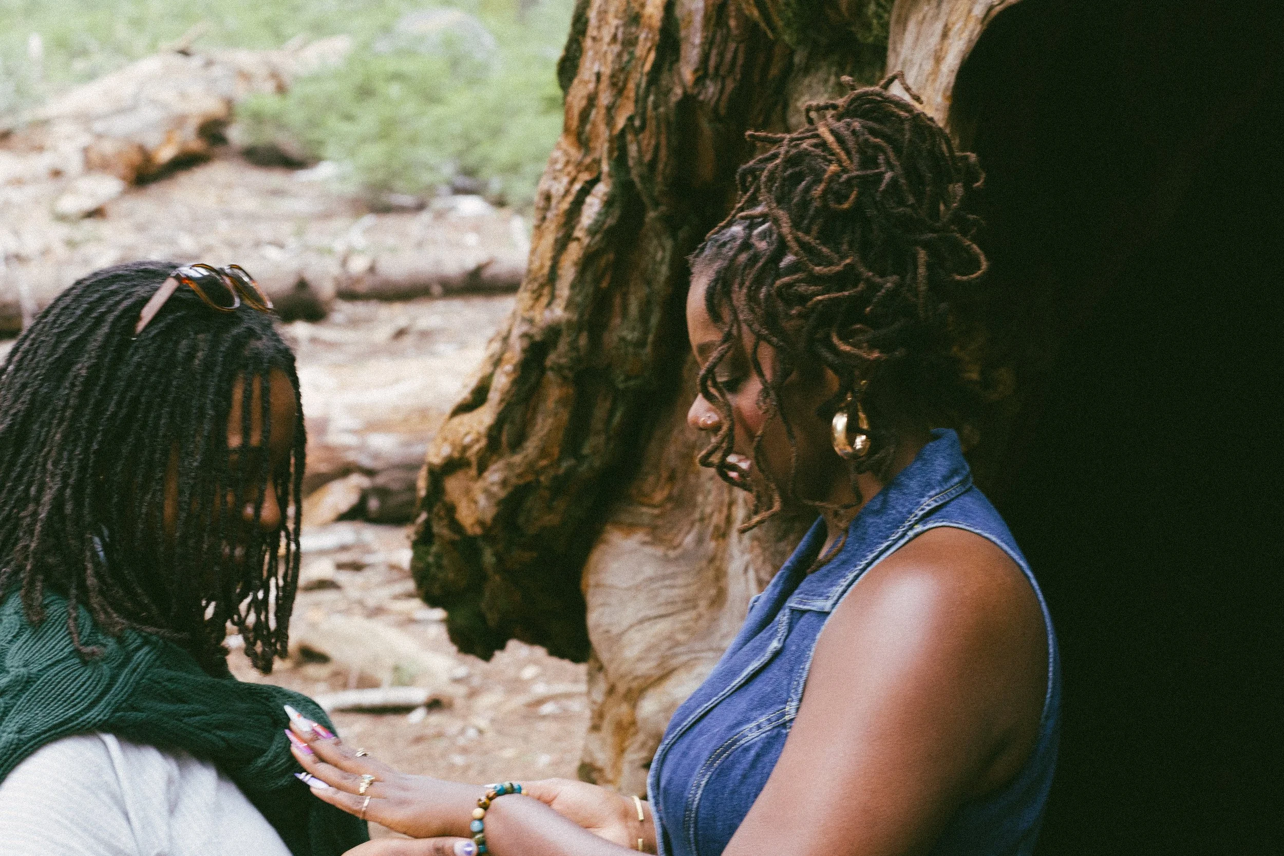 Blending in like any other tourist, I wandered the trail until, between the towering giants, I spotted J and A—despite having no cell reception. I found a spot with a clear view but far enough away to not give myself away. People wandered in and out of the frame, and I had to time my shots between tourists stopping to take their own photos of the Chief Sequoyah Tree.